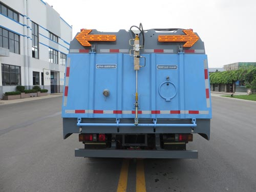 车辆主要专用装置有清扫装置,抽吸装置,喷水装置,垃圾箱,对路面进行清扫作业.装ABS,ABS及控制器型号为:APG3550500H1,生产厂家为:浙江亚太机电股份有限公司.电池种类/型号/生产企业:磷酸铁锂锂离子动力蓄电池/L202D02/宁德时代新能源科技股份有限公司.电机峰值功率为120kW,额定功率为75kW.技术阶段为"发展期".车辆侧面防护装置由专用装置扫刷代替.后下部防护装置的材料材质为Q235钢,连接方式为焊接,断面尺寸(mm)为60?20,最大离地高度为370mm.