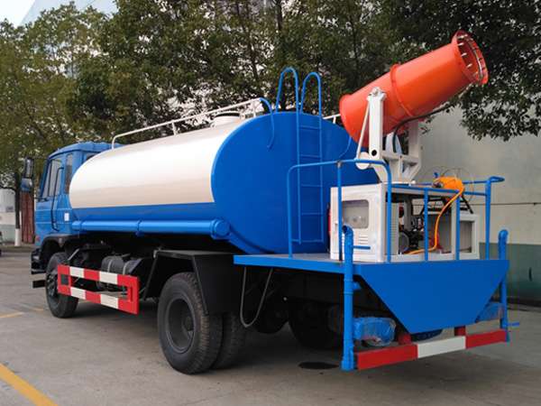 8方雾炮车配备前冲后洒、侧喷、平台高炮、自流阀及消防接头各1个、水管2根、标配亿丰泵或金龙泵 ,可选装20-40米雾炮机。