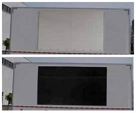 | 该车是进行舞台文艺表演的专用车辆。可选装LED屏,可选装不同形式后门.车厢顶棚封闭,并采用衍架结构,可升降,车厢两侧板可展开,与顶棚形成整车舞台顶棚;活动舞台板可折叠于车厢内,通过展开装置展后与固定舞台台面形成整车舞台台面;底盘大梁部分设有支撑装置。整车长/轴距/前悬/后悬/高对应关系为(mm):10000/5700/1350/2950/3950,8980/5250/1350/2380/3950,8400/4500/1350/2550/3750。侧防护采用Q235A碳钢,焊接连接,后防护采用Q235A碳钢,焊接连接,后防护截面尺寸120?0mm, 下边缘离地高度500mm。ABS型号为CM4XL-4S/4K(4S/4M),生产厂家为广州科密汽车电子控制技术股份有限公司。选装车厢两侧LED屏幕结构,选装车厢两侧广告灯箱结构,选装侧门结构,选装裙边结构,选装箱体贴画。 |