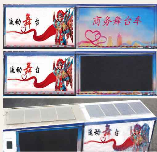 | 选装无导流罩结构,随底盘选装驾驶室,选装箱体贴画。车厢顶棚封闭,并采用衍架结构,可升降,车厢两侧板可展开,与顶棚形成整车舞台顶棚;活动舞台板可折叠于车厢内,通过展开装置展后与固定舞台台面形成整车舞台台面;底盘大梁部分设有支撑装置。该车是进行舞台文艺表演的专用车辆。侧防护采用冷弯型钢/Q235-B,螺栓连接。后防护采用冷弯型钢/Q235-B,焊接连接,截面尺寸(宽赘?(mm):80?20,离地高450mm。ABS系统控制方式:4S/4M,ABS系统控制器型号:CM4XL-21VI.E5,ABS系统控制器生产企业:广州科密汽车电子控制技术股份有限公司。该车作为流动演出的、可展开成为舞台。 |