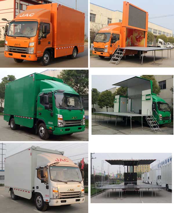 | 舞台厢体可选装三种结构:第一种为侧板整体垂直举升内藏式舞台板铺平形成舞台;第二种为侧板上翻开启内藏式舞台板铺平形成舞台;[前两种结构厢体侧部可选装卷轴画面装置或LED屏,LED屏外部可选装盖板];第三种为侧部和后部均开启形成舞台(舞台台口在车辆后部)。后部可选装不同的型式(左侧开门、中间开门、无后门、后部对开门型式)。主要专用设备:舞台板、舞台开合操作系统、支撑装置等。厢体侧部防护和后部防护装置均为裙板式结构,防护装置均采用Q235A普通碳素钢板(厚度1.5mm)折弯组合焊接而成,防护装置均采用焊接方式与车体连接,后防护装置离地高度为420mm。ABS控制器厂家/型号:ABS 8/克诺尔制动设备(上海)有限公司。该车是进行文艺演出或产品宣传展示用的专用作业车辆。 |
