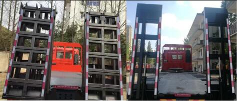 | 1.该车用于运输不可拆解物体;2.防护材料:Q235,连接方式:左右侧面采用焊接连接,后部防护与车辆焊接连接,后防护装置断面尺寸:120?5mm,离地高度(mm):430;3.安装具有卫星定位功能的行驶记录仪;4..ABS型号为3631010-C2000,生产厂家为东科克诺尔商用车制动系统(十堰)公司,5,发动机与油耗对应关系:ISD270 50(40.3),ISL8.9-315E50A(40.5),ISL9.5-340E51A(40.3),YC6L290-50(40.3),YC6A300-50(41.8),YC6L350-50(42.1);仅采用1850+3100+1350轴距,整车长度及前悬/后悬对应关系:9700/1450/1950;9700/1500/1900;10300/1450/2550;10300/1500/2500;选装驾驶室,选装后部爬梯结构,因选装不同爬梯机构和不同发动机引起整备质量不同,选装底盘布置 |