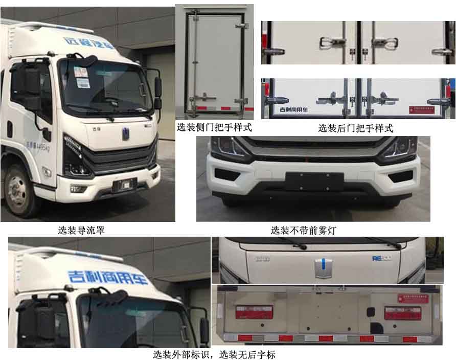 | 1:储能装置种类/生产企业:磷酸铁锂电池/湖北亿纬动力有限公司;2:驱动电机额定功率为50kW,峰值功率为100kW;3:ABS型号:CM4XL-4S/4M,VIE ABS-II,生产企业:广州瑞立科密汽车电子股份有限公司,浙江万安科技股份有限公司;4:发动机GS92MG4最大净功率68kW,油耗7.9L/100km;5:允许外接充电;6:车辆配装车载终端;7:车厢顶部封闭不可开启;8:选装相同功率的不同外观冷藏机组;9:选装导流罩及外部标识;10:选装侧门及后门把手样式,选装无后部字标;11:侧防护栏所用材料材质为Q235,连接方式:螺栓连接;或采用货厢裙部作侧防护(材质为玻纤增强聚丙烯蜂窝复合板或铝合金6061),连接方式:铆接,螺栓连接.后防护栏材质为Q235,连接方式:螺栓连接,后下部防护装置断面尺寸(mm):100?0,离地高度400(mm);或采用货厢裙部作后防护(材质为Q235或铝合金6061),连接方式:焊接,螺栓连接,后部工作装置离地高度450mm,480mm.12:外形尺寸与货箱尺寸的对应关系为:整车宽2100对应货箱内宽1920,1950;整车宽2200对应货箱内宽2020,2050;整车宽2350对应货箱内宽2200;整车高2980对应货箱内高1800;整车高3050,3080对应货箱内高1900;整车高3150,3180对应货箱内高2000;整车高3280对应货箱内高2100.13:选装不带前雾灯结构,选装侧部及后部防护样式. |