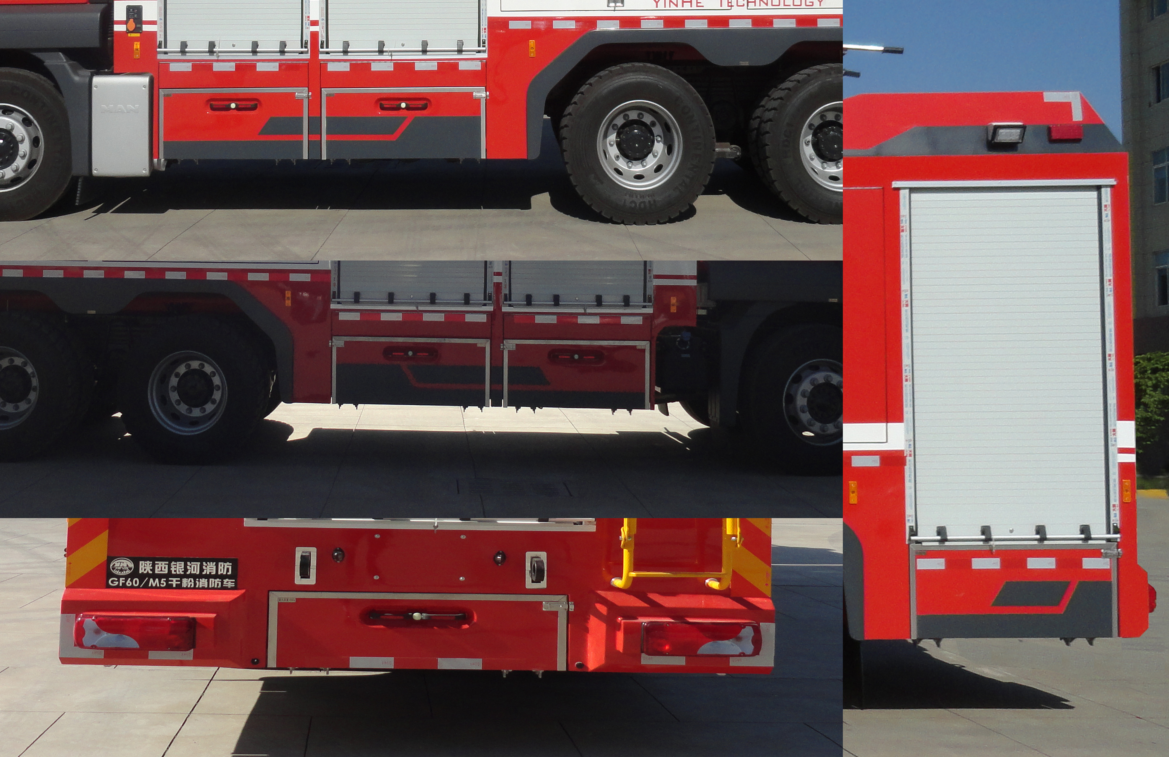 | 干粉罐总容积为6.0立方米,单个干粉罐总容积为3.0立方米,单个干粉罐尺寸(直径赘?:1800?220mm。整体式侧后防护结构,后防护离地高度:471mm。,后伸:145。ABS生产企业为:KNORR,型号为: 0 486 106。主要专用装置有干粉系统。 |