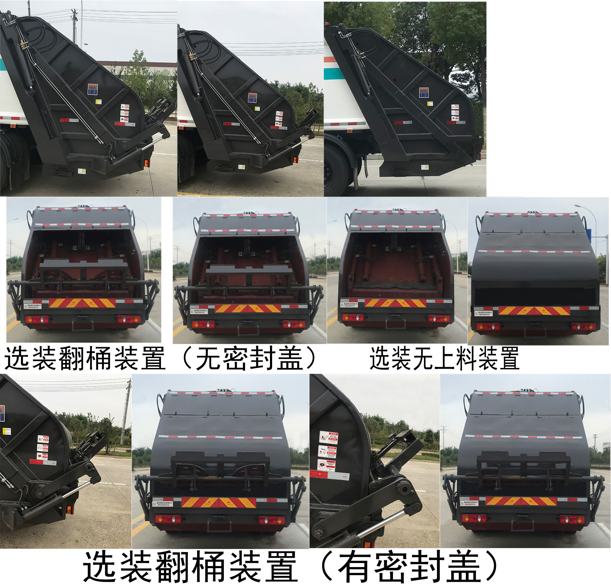 | ABS型号:631010-C2000,ABS 8,4460046450;ABS生产企业:东科克诺尔商用车制动系统(十堰)有限公司,东科克诺尔商用车制动系统(十堰)有限公司,威伯科汽车控制系统(中国)有限公司;安装有具有卫星定位功能的行驶记录仪;选装描述:随底盘选装选装高度不同的驾驶室;选装前雾灯;选装驾驶室顶部装饰灯;选装驾驶室前面罩;选装前保险杠及前部灯具,选装后视镜;选装后部灯具;选装驾驶室前脸扰流罩;驾驶室卧铺侧窗选装装饰板.选装后部工作装置,选装后部无密封盖.该车型可选装ETC车载装置;发动机/油耗值(L/100km)对应关系为:DDi50E190-60/23.9,D4.5NS6B190/24.4,D6.7NS6B230/23.7,B6.2NS6B210/23.8,B6.2NS6B230/23.8;侧后防护情况:侧防护材料采用Q235,螺栓连接;后防护由专用装置替代,下边缘离地高:460mm;自卸方式为后卸式;专用功能及装置:该车主要专用装置由箱体、压缩系统组成,用于垃圾的收集与清运;后伸尺寸:400mm;其他说明:选装工作装置时整车外形长/轴距/后伸对应关系为(mm):①无上料装置,摆臂装置,全密封斗装置:8660/4500/0,8860/4700/0;②翻桶装置,半密封斗装置:9060/4500/400,9260/4700/400。仅采用4500mm,4700mm轴距; |