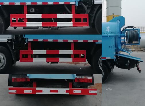 该车用于下水道排污及疏通,专用装置主要由罐体和高压水泵组成.随底盘选装前面罩以及前雾灯.清洗和吸污功能不同时使用,两罐不能同时装载.罐体外形尺寸为: 罐体外形尺寸(直段长字本?(mm):3100?200,其中罐体前部1400mm为清水罐,有效容积1.5立方米.罐体后部1700mm为污水罐,有效容积1.8立方米,ABS系统生产厂家,型号 :襄阳东风隆诚机械有限责任公司,ABS厂家及型号:襄阳东风隆诚机械有限责任公司/ABS/ASR-24V-4S/4M.防护:防护材料均采用Q235B,与车辆连接方式为焊接.后防:离地高度为400mm,断面为120mmX50mm.采用3308轴距底盘改装.选装侧面及后部箱体外形样式 |