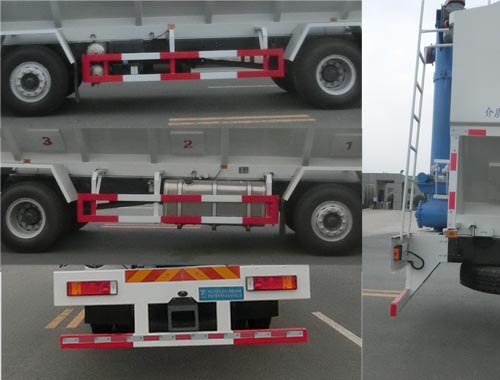 | 随底盘选装保险杠、翼子板,选装后视镜,选装车门下饰板,选装卧铺侧窗,选装绿玻璃,选装平顶驾驶室,选装导流罩。选装后部绞龙电机的安装型式及电控箱安装位置。侧防护采用冷弯型钢/Q235-B,螺栓连接;后防护采用冷弯型钢/Q235-B,焊接连接。后防护截面高度尺寸120mm, 截面宽度尺寸50mm,下边缘离地高度500mm。选装限速装置,限速80km/h.ABS型号/企业:ABS-E 4S/4M/威伯科汽车控制系统(中国)有限公司,CM4XL-4S/4M/广州瑞立科密汽车电子股份有限公司。安装具有卫星定位功能的行驶记录仪。发动机型号/油耗申报值对应关系为:YCS06245-60A/30.3L/100km,YCS06270-60/30.3L/100km。罐体有效容积:26.2立方米,当采用2050+4450轴距时:罐体外形尺寸:8100?500?200(mm);当采用2050+4050轴距时:罐体外形尺寸:7100?500?300(mm)。 |