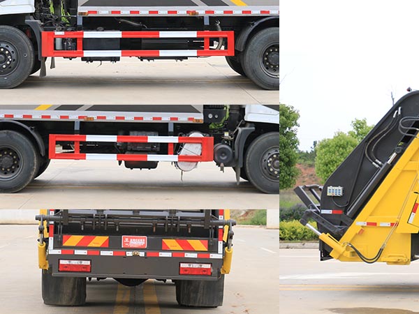 1、该车顶部封闭不可开启,主要专用装置由压缩箱体、填充器装置和压缩电控系统组成,用于垃圾桶的倾倒及垃圾收集压缩。2、侧防护材料为Q235B,侧防护螺栓连接,后防护由专用作业装置替代,下边缘离地高:500mm。3、该车可选装方形或弧形箱体,选装后部工作装置。选装工作装置时外形长/轴距/后悬对应关系为(mm):①7955/3950/2565,8690/4500/2750;②7800/3950/2410,8500/4500/2560;③7700/3950/2310,8400/4500/2460;④7750/3950/2360,8450/4500/2510。仅采用3950mm,4500mm轴距。4、随底盘选装前面罩,前保险杠,前组合灯具,前雾灯,排半驾驶室。ABS型号/厂家:3631010-C2000/东科克诺尔商用车制动系统(十堰)有限公司,ABS-E 4S/4M/生产厂为威伯科汽车控制系统(中国)有限公司.5发动机型号/油耗值(L/100km)对应关系: D6.7NS6B230,B6.2NS6B230,B6.2NS6B210,D4.5NS6B220,D4.5NS6B190,D4.0NS6B195,D4.0NS6B170,D4.0NS6B160/26.3,25.9,25.9,26.4,26.4,26.6,26.6,26.6。 |