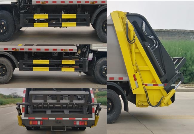 | 1、该车主要专用装置为箱体,压缩系统,用于垃圾的收集与清运;2、选装落地斗装置外观,选装翻桶装置外观,选装摆臂装置外观,选装三角斗装置外观,选装无上料装置。选装工作装置时外形长 /轴距/后悬/后伸对应关系为(mm)①翻桶装置:6805/3360/1950/420,②三角斗装置:6675/3360/1950/290,③落地斗装置:6715/3360/1950/330,④摆臂装置:6505/3360/1950/120,⑤无上料装置:6385/3360/1950/0。3、侧防护材料采用Q235B,连接方式螺栓连接,后防护采用专用装置代替,下边缘离地高度450mm;4、ABS系统型号:VIE ABS-II,ABS系统生产厂家:浙江万安科技股份有限公司,发动机JX4D30D6H的油耗值为13.9 L/100km; |