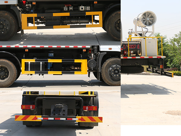 1、该车用途为抑尘降霾,主要装置为抑尘罐及喷雾装置。仅选用3950mm轴距。可选装电子自动水炮,选装电子水炮时整车长/前悬/前伸(mm)对应关系8260/1250/500,8460/1450/500;无选装电子水炮时整车长/前悬/前伸(mm)对应关系7760/1250/0,7960/1450/0。2、侧/后防护材料Q235B,侧防护螺栓连接,后防护焊接,截面尺寸(mm):150?0,离地高(mm):450。3、随底盘选装驾驶室,选装尾气处理器,选装方形装卸软管箱,选装鸭子嘴加对冲,选装高位花洒,选装不同结构的雾炮。ABS型号及生产厂家为:3631010-C2000/东科克诺尔商用车制动系统(十堰)有限公司,J ABS/焦作博瑞克控制技术有限公司。 |