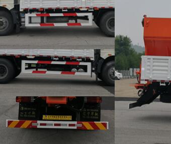 该车用于除雪作业,主要装置为融雪剂撒布机,该车不安装前安装架时,整车长度8860mm,前悬1400mm,整备质量8440kg.该车安装前安装架时,整车长为:9020mm,前悬1400mm,前伸160 mm,整备质量8440kg;作业可安装除雪铲或除雪滚刷,安装除雪铲时前伸:1870mm,整车长度10730mm,整备质量9430kg:安装A型除雪滚刷时前伸:2570mm,整车长度11430mm,整备质量9860kg,安装B型除雪滚刷时前伸:2280mm,整车长度11140mm,整备质量10260kg.侧防护材料为Q235,连接方式为螺栓连接:后防护材料为Q235,连接方式为螺栓连接,后防护截面尺寸(mm):140x50,后防护离地高度(mm):390.ABS系统型号CM4XL,ABS系统生产厂家:长春瑞立科密汽车电子有限公司.安装具有卫星定位功能的行驶记录仪.随底盘选装前围和灯具,选装宽体保险杠,脚踏板. |