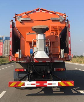 该车前伸为门架,可选装除雪铲或扫雪刷,专用装置为融雪剂撒布机,用途为向路面抛撒融雪剂便于清理积雪,侧面及后下部防护装置所用材料均为Q235,与车体均采用螺栓连接,后下部防护离地高度为470mm,截面尺寸为180mm?80mm,ABS系统控制器型号:4460046300,生产企业:威伯科(上海)管理有限公司,可选装融雪剂撒布机样式、选装融雪液撒布机或预湿撒布机,无门架时接近角/离去角(度)为17/12,整车长度/前伸/轴距(mm)对应关系为:1.门架:10785/1150/4125+1350,10985/1150/4325+1350;2.选装除雪铲:11315/1680/4125+1350,11515/1680/4325+1350;3.选装扫雪刷:11765/2130/4125+1350,11965/2130/4325+1350;4.无门架:9635/0/4125+1350,9835/0/4325+1350;5.选装板式门架:9815/180/4125+1350,10015/180/4325+1350;整备质量(kg)/载质量(kg)对应关系为:1.无及选装门架:19200/5670;2.选装除雪铲或扫雪刷:20000/4870;发动机MC11.36-60、MC09.35-60、MC09.38-60、MC09.35B-60、WP10H400E62、MC11.40-60、MC11.44-60净功率为265kW、257kW、276kW、257kW、289kW、294kW、324kW. |