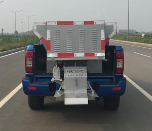 该车专用装置为融雪剂撒布机,用途为向路面抛撒融雪剂便于清理积雪,外形尺寸(mm)长/高/前伸/后伸/整备质量(kg)/额定载质量(kg)/接近角/离去角对应关系为:选装门架及动力装置:5710/1895/150/0/2420/50/22?26?选装除雪铲与撒布机:7020/1830/890/570/2320/150/12?16?选装扫雪刷及动力装置:7100/1895/1540/0/2470/0/13?26?发动机最大净功率99KW,选装一种轮辋,选装后货箱两侧绳钩.ABS系统控制器号:APG3550500G,生产厂家:浙江亚太机电股份有限公司。 |