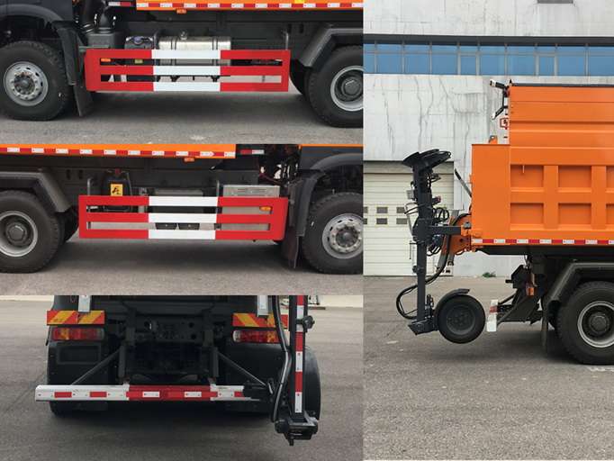 专用装置:撒布机总成;该车型主要用于公路、城市道路、广场、机场、码头等混凝土路面和沥青路面的机械化除雪作业;该车侧、后防护装置是由Q235A钢板加工而成,通过高强度螺栓与车架连接,侧防护采用横杆结构,左右对称,横杆截面高为120mm,横杆间距为100mm,离地高度为480mm,后下部防护装置的截面尺寸(长卓碜高):2400mm?20mm?20mm,离地高度为440mm;仅用轴距(mm):4325+1350;发动机MC11.36-60、MC09.35-60、MC09.38-60、MC09.35B-60、WP10H400E62、MC11.40-60、MC11.44-60净功率分别为265kW、257kW、276kW、257kW、289kW、294kW、324Kw;发动机MC09.35-60,MC09.38-60对应油耗值为37.0L/100km,发动机MC09.35B-60对应油耗值为37.1L/100km,发动机WP10H400E62对应油耗值为37.2L/100km,发动机MC11.36-60,MC11.40-60,MC11.44-60对应油耗值为37.3L/100km;ABS系统控制器生产企业/型号为威伯科(上海)管理有限公司/4460046300;安装有卫星定位功能的行驶记录仪;前伸为175mm,长、高、后伸、整备质量对应关系分别为:10210mm,3995mm,1200mm,19150kg(选装进口撒布机,装驾驶室后部液压系统)/10210mm,3995mm,1200mm,185000kg(选装进口撒布机,不装驾驶室后部液压系统)/10410mm,3755mm,1400mm,19080kg(选装国产撒布机,装驾驶室后部液压系统). |