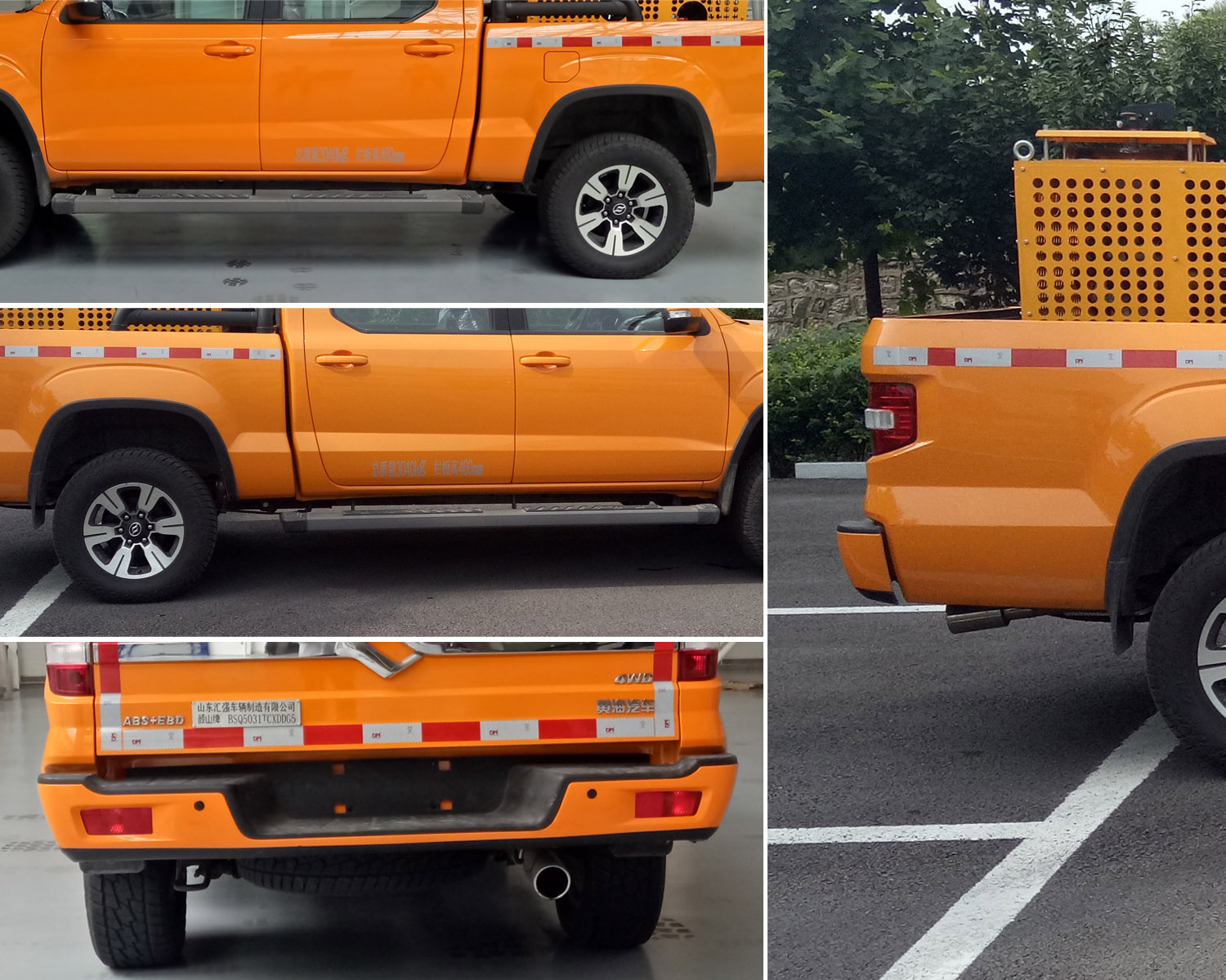 该车前部安装前安装架,该车安装动力设备时,整车长为5645mm,对应高度1985mm;该车选装撒布机时,整车长为6575mm,后伸为930mm,对应高为1865mm;该车安装雪铲+动力设备作业时,整车长为6685mm,前伸1040mm,高1985mm;该车安装雪铲+撒布机作业时,整车长为7615mm,前伸1040mm,后伸930mm,高1985mm;该车安装滚刷+动力设备作业时,整车长为7285mm,前伸1640mm,高1985mm.发动机最大净功率157.9kW.ABS系统型号为APG3550500G,生产企业为浙江亚太机电股份有限公司. |