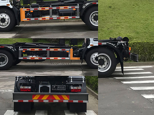 | 仅选装3800mm轴距;安装具有卫星定位的行驶记录仪;侧防护及后部防护装置的材料材质:Q235B,连接方式为螺栓连接;后部防护装置的断面尺寸(宽赘?mm:60?40,后部防护装置的离地高度460mm;选装铝合金材质侧防护;随底盘选装CY4SK161、NV30-C6C、CY4SK261、NV30-C6D、CY4SK361、NV30-C6G、D4.0NS6B170、YCS04190-68、D4.0NS6B185、ZD30D16-6N、D25TCIF1、D30TCIF1、D40TCIF1、D45TCIF1、YCY30165-60;对应油耗值( L/100km):20.4,20.3,20.1,20.3,20.4,20.6,20.5,20.3,20.4,20.3,20.3,20.2,20.3,20.2,20.3;随底盘选装前面罩,前保险杠,前组合灯具,前雾灯,后视镜;ABS型号为ASR-24V-4S/4M,生产厂家为襄阳东风隆诚机械有限责任公司;该车主要由液压控制系统控制专用拉臂的起吊、拉装工作,从而实现放置在地面的装载有生活垃圾的垃圾箱体的转运功能。 |
