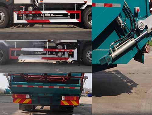 | 安装具有卫星定位功能的行驶记录仪.选装机械手翻转装置.该车通过垃圾箱,填装机构等装置,达到垃圾收集装填及推挤卸料的作业功能;选装后填装器盖,该车有3种配置:A(无上料装置,基本型),B(选装翻桶装置),C(选装翻斗装置).配置A时,整车长9382mm,后悬2822mm,整备质量13100kg,额定载质量4705kg;配置B时,整车长9707mm,后悬2822mm,后伸325mm,整备质量13420kg,额定载质量4385kg;配置C时,整车长9441mm,后悬2716mm,后伸165mm,整备质量13740kg,额定载质量4065kg;侧面防护装置所用材料材质:Q235B,连接方式为螺栓连接;后部防护装置由工作装置替代,后部工作装置离地高度为408mm.电池种类/生产企业:磷酸铁锂电池/宁德时代新能源科技股份有限公司;驱动电机类型为永磁同步电机,型号为TZ370XS-LKM1101,额定功率为80kw,峰值功率为160kw,生产企业为苏州绿控传动科技股份有限公司,控制器型号为KTZ54X45S-LKC1101,生产企业为苏州绿控传动科技股份有限公司;ABS型号/生产企业:CM4XL-4S/4M/广州瑞立科密汽车电子股份有限公司。随底盘选装驾驶室。该车型可选装ETC车载装置。 |