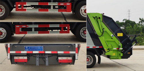 1.专用装置:液压机构和填装器,主要用于城镇环卫垃圾的运输;.2.随底盘选装驾驶室,选装尾部翻转机构样式;3.整车长/轴距/后悬/后伸对应关系为(mm):5785/2700/1750/280,6200/2950/1915/280,6700/3308/2057/280;4.侧防护装置材料为Q235A碳钢,连接方式为焊接连接,后部防护由车身结构代替,后部离地高度(mm):430;5.ABS型号/厂家:ABS/ASR-12V-4S/4M/襄阳东风隆诚机械有限责任公司;6.发动机型号/油耗值(L/100km)对应关系:D20TCIF1/16.2,YCY24140-60/16.2,CA4DB1-11E6/16.2,ZD30D16-6N/16.2,CY4BK461/16.2,CY4BK161/16.2,Q23-115E60/16.2,H20-120E60/16.2,CA4DB1-13E6/16.2,Q28-130E60/16.2. |