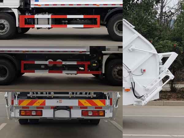 1、该车主要专用装置由箱体、压缩系统组成,用于垃圾的收集与清运。该车可选装方形或弧形箱体,选装全密封盖装置,选装方形挡泥板,选装侧防护连接结构件。选装后部工作装置。选装工作装置时外形长/后伸对应关系为(mm):①无上料装置:8620/-;②全密封斗装置和摆臂装置:8820/200;③翻桶装置和翻斗装置:9020/400。仅采用轴距:4500mm。2、侧防护采用冷弯型钢/Q235,螺栓连接;后防护由专用装置代替,下边缘离地高:500mm。3、安装带有卫星定位功能的行驶记录仪。ABS系统生产厂家及型号分别为:西安正昌电子有限责任公司(型号:ZQFB-V)。发动机WP4.6NQ220E61的油耗值为:26.53 L/100Km。 |