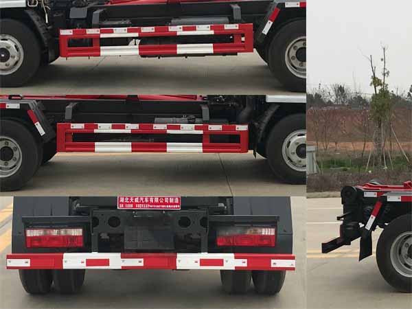 | 该车用于垃圾的收集清运,主要专用装置为勾臂.整车外形尺寸长/后悬/轴距(mm)对应关系:5530/1167/3308,5320/957/3308,4950/945/2950,4700/945/2700.侧、后防护装置材料材质均为Q235,连接方式:左右侧面及后下部防护均采用焊接连接,后下部防护断面尺寸(宽赘? (mm):50?00,后下部防护离地高度(mm):400.随底盘选装驾驶室,随底盘选装油箱左右位置.选装固定锁紧,选装液压锁紧,选装横向锁紧,选装大臂结构,选装后部结构.发动机与油耗值(L/100km)的对应关系为:D20TCIF1/11.4,YCY24140-60/11.4,CA4DB1-11E6/11.4,ZD30D16-6N/11.4,CY4BK461/11.4,CY4BK161/11.4,Q23-115E60/11.4,H20-120E60/11.4,CA4DB1-13E6/11.4,Q28-130E60/11.4.ABS型号/厂家:ABS/ASR-12V-4S/4M/襄阳东风隆诚机械有限责任公司. |