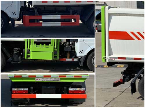 | 该车装备有专用装置,用于以本车装置和动力配合集装垃圾的定型容器自行将垃圾装入,转运和倾泻的专用汽车;侧,后防护采用Q235材质螺栓连接在大梁上,后防护断面尺寸(mm):100?0,离地高度(mm):340;随底盘选装驾驶室,选装不同提升机样式,选装不同后门开启样式,选装ETC车载装置;ABS型号/厂家:APG3550500A/浙江亚太机电股份有限公司;发动机Q23-95E60的最大净功率67kW,对应油耗值(L/100km)为11.3. |