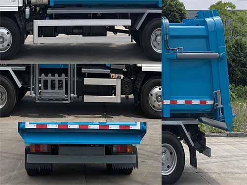 1.该车用于餐厨垃圾收集、清运,主要装置为密封箱体、提桶机构;选装箱体外形;随底盘选装驾驶室及外观;2.侧面防护材质为铝合金,螺栓连接;后下防护材质Q235,螺栓连接,截面尺寸和离地高度分别为120mm*60mm和400mm;3.该底盘选装制动系统:装液压制动系统时,ABS及其控制器型号/生产企业对应关系为::APG3550500A/浙江亚太机电股份有限公司,CM4YL/广州瑞立科密汽车电子股份有限公司;装气压制动系统时,ABS及其控制器型号/生产企业对应关系为:CM4XL-4S/4M/广州瑞立科密汽车电子股份有限公司。 |