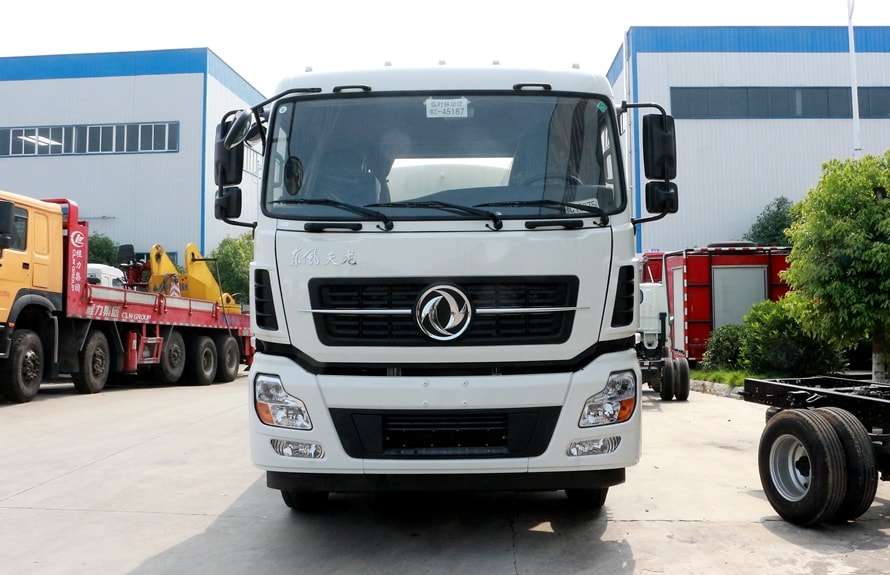 采用东风汽车集团生产的原装东风天龙6*4驱动底盘,排半带卧豪华驾驶室,康明斯245马力国五电喷、增压发动机,陕齿小八档变速箱,4350+1300mm双桥轴距,10吨后桥,11.00R20原厂钢丝胎,原厂abs,带空调,带方向助力,离合助力器,气刹制动。