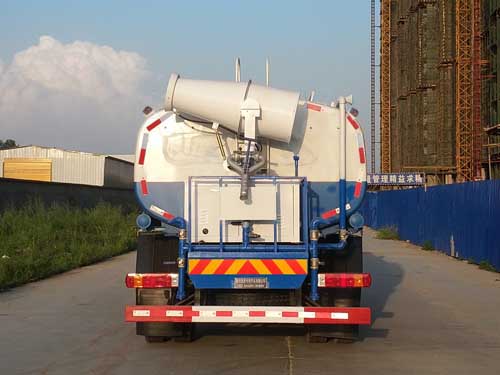 随底盘选装驾驶室和前挡泥板样式,选装喷雾装置,ABS生产厂家/型号:浙江万安科技股份有限公司/VIE ABS-II。侧防护采用Q235,螺栓连接。后防护采用Q235,焊接连接。后防护截面高度尺寸140mm,截面宽度尺寸50mm,下边缘离地高度500mm。采用4000mm轴距底盘。该车主要装置是喷雾装置,用于降低空气中的灰尘,雾霾等现象。选装外观样式及后平台样式。