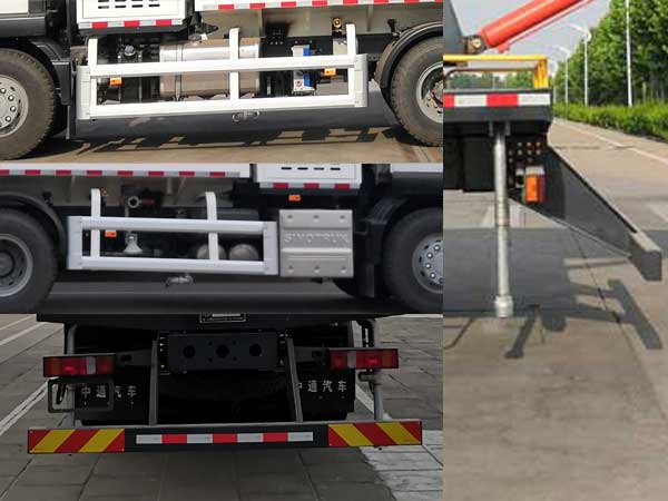 1、侧面防护装置材料材质为铝合金,连接方式为螺栓连接,后下部防护装置的材料材质为Q345,连接方式为螺栓连接,后下部防护装置的断面尺寸为(mm):140?0,最大离地高度为500mm;2、随底盘,ABS系统控制器生产企业/型号为威伯科(上海)管理有限公司/4460046300;选装EBS,EBS系统控制器生产企业/型号为威伯科(上海)管理有限公司/EBS3;3、该车后伸为745mm,该车采用轴距(mm):4300+1350;4、随底盘,选装驾驶室;选装顶置空调;副驾驶车门可选装下视窗;5、选装后部箭头灯样式;6、选装后防上部喷洒结构;7、选装前对角冲结构;8、选装后部布置结构;9、选装不安装中置对角冲结构;10、该车专用装置为风送式喷雾机,主要用途为喷洒降尘等. |