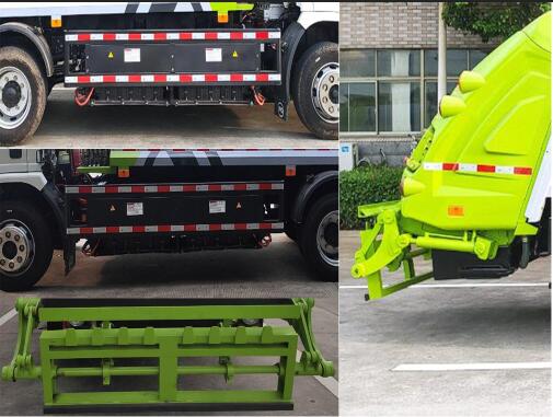 ABS型号:CM4XL-4S/4M;ABS生产企业:广州瑞立科密汽车电子股份有限公司;储能装置种类:磷酸铁锂蓄电池;储能装置生产企业:汕尾比亚迪汽车有限公司;选装描述:随底盘选装铝制轮辋,宽轮眉,该车可选装ETC车载装置;侧后防护情况:侧后防护情况:侧防护材料:Q355B;连接方式:螺栓连接。后防护装置由工作装置代替,离地高度 490mm;专用功能及装置:该车装有垃圾压缩装置、翻斗机构,用于城市生活垃圾运输;;后伸尺寸:350mm;其他说明:驱动电机类型:永磁同步电机,额定功率95kW,峰值功率160kW,生产企业:精进电动科技股份有限公司;