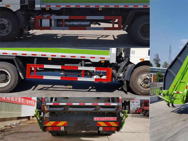 | ABS型号:CM4XL;ABS生产企业:长春瑞立科密汽车电子有限公司;安装有限速装置;限速装置限速(km/h):89;安装有具有卫星定位功能的行驶记录仪;选装描述:随底盘选装驾驶室;选装后部上料结构.选装ETC车载装置;发动机/油耗值(L/100km)对应关系为:CA4DK1-22E6/25.6,CA4DK1-18E6/25.6, CA6DH1-24E6/26.92;侧后防护情况:侧防护材料Q235,焊接连接;后防护由车辆专用作业装置代替,下边缘离地高度500mm;专用功能及装置:该车主要专用装置为垃圾箱及压缩机构,用于城市环卫垃圾压缩及运输;;其他说明:仅采用4700,4500mm轴距底盘,长度/轴距/后悬(mm)对应关系:8800/4700/2700,8800/4500/2900,8600/4500/2700; |