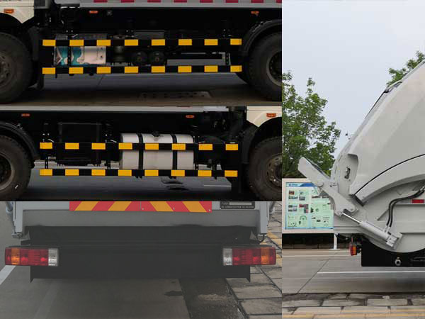 1、该车选用4350+1350mm轴距;2、安装翻桶机构时,车辆长度为10725mm或10535mm,对应后伸为540mm或350mm,整备质量为15700kg;3、该车后部选装翻斗机构;4、选装安装翻斗机构时,车辆长度为10390mm,后伸为290mm,整备质量为16000kg;5、侧防护装置所用材料材质为Q235,侧防护装置连接方式为螺栓连接,该车后部车身作为后下部防护装置,最大离地高度为460mm;6、发动机CA6DK1-26E6、CA6DK1-28E6、CA6DK1-32E6对应的油耗值均为32.5 L/100km;7、随底盘,选装前围和灯具,选装宽体保险杠,脚踏板;8、安装具有卫星定位功能的行驶记录仪;9、随底盘, ABS系统生产厂家:长春瑞立科密汽车电子有限公司,型号:CM4XL;10、长度/前悬/后悬/轴距/后伸对应关系如下:10725/1400/3085/4350+1350/540,10535/1400/3085/4350+1350/350,10390/1400/3000/4350+1350/290;11、随底盘装备限速装置,限速89km/h;12、该车专用装置有垃圾箱、液压机构及垃圾装填器,用于将垃圾自行收集、压实装入、卸料功能. |