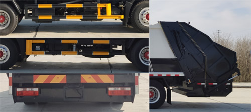 1.专用装置:液压机构和填装器,主要用于城镇环卫垃圾的运输;2.选用轴距(mm)3950,4500,整车长/轴距/后悬/后伸对应关系为(mm):8430/3950/2560/660,8800/4500/2760/280,整备质量与额定载质量对应关系为:11000kg/6870kg(2人)/6805kg(3人),10700kg/7170kg(2人)/7105kg(3人);3.防护材料:Q235A碳钢,连接方式:左右侧面防护采用焊接连接在副梁上,后部防护由专用装置代替,后部专用装置离地高为(mm):450;4.安装具有卫星定位功能的行驶记录仪;5.采用的发动机型号与油耗值对应关系为(L/100km): B6.2NS6B210/26.4,CY4SK761/26.4,D4.0NS6B195/26.4,D4.5NS6B220/26.4,YCS04200-68/26.4.B6.2NS6B230/26.4;6.ABS系统生产厂家,型号:焦作博瑞克控制技术有限公司;7.可选装后部翻转样式.随底盘选装驾驶室。 |