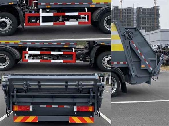| 主要专用装置:垃圾桶提升机构,垃圾厢.车辆用途:垃圾收集运输.安装翻桶机构时整车后伸为400mm,整车长度为8030mm,整备质量为8590kg.不安装翻桶机构时整车后伸为0mm,整车长度为7630mm,整备质量为8200kg.侧防护装置材料:Q345A,连接方式:螺栓连接;后防护装置为垃圾卸料机构替代,离地高度460mm.该车安装具有卫星定位功能的行驶记录仪;随底盘装DDi50E190-60,D4.5NS6B190,B6.2NS6B210发动机,对应的油耗值(L/100km)为20.5,20.8,20.9;随底盘装有ABS,ABS型号/生产厂家:3631010-C2000/东科克诺尔商用车制动系统(十堰)有限公司,ABS 8/东科克诺尔商用车制动系统(十堰)有限公司,4460046450/威伯科汽车控制系统(中国)有限公司.仅选用底盘3800mm轴距.发动机D4.5NS6B190,DDi50E190-60,B6.2NS6B210的最大净功率为135kw,143kw,151kw.随底盘选装:选装前雾灯;选装驾驶室顶部装饰灯;选装驾驶室前面罩;选装前保险杠及及前部灯具,选装后视镜;驾驶室卧铺侧窗选装装饰板;选装油箱安装位置,选装踏步结构.该车选装ETC. |
