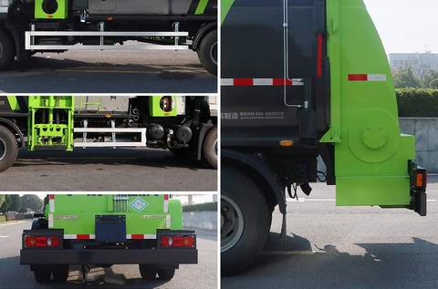 该车选用底盘4200mm轴距,通过垃圾箱、翻桶机构、填装器、液压系统、电气控制系统等装置,达到垃圾收集及卸料的作业功能;选装简便型卸料装置时,整备质量为6280kg,额定载质量为4725kg;选装普通型卸料装置时,整备质量为6580kg,额定载质量为4425kg;侧面防护装置的材料为铝合金,连接方式为螺栓连接;后防护装置材料为Q345A,与车辆连接方式为螺栓连接;后部防护装置的断面尺寸为180?5mm,离地高度为400mm;随底盘装有ABS,ABS型号/生产厂家:3631010-C2000/东科克诺尔商用车制动系统(十堰)有限公司.还可选装加热系统,对整车的尺寸及重量的变化可忽略不计. |