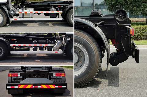 | 该车选用底盘4500+1350mm轴距.该车通过拉臂装置及液压系统,实现对垃圾的装载及卸料的作业功能;该车仅运输封闭式专用货厢;标配拉臂装置时,整备质量11350kg,额定载质量13520kg;整车高度3150mm;选配拉臂装置1时,整备质量10750kg,额定载质量14120kg,整车高度及外观与标配一致;选配拉臂装置2时,整备质量11350kg,额定载质量13520kg,整车高度3195mm;侧面防护装置的材料为铝合金,连接方式为螺栓连接,可选装其局部外观;后防护装置材料为Q345A,与车辆连接方式为螺栓连接;后部防护装置的断面尺寸为240?5mm,离地高度为467mm;该车安装具有卫星定位功能的行驶记录仪;随底盘装YCS06270-60发动机,对应的油耗值(L/100km)为32.13;随底盘装有ABS,ABS型号/企业:ABS-E 4S/4M/威伯科汽车控制系统(中国)有限公司.还可选装左侧液压油箱布置位置. |