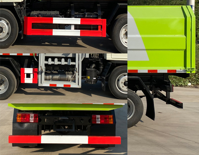 | ABS型号:CM4YL;ABS生产企业:广州瑞立科密汽车电子股份有限公司;发动机净功率值:发动机Q23-95C60的最大净功率分别为67kW;选装描述:仅选轴距2600mm;随底盘选装选装前部LOGO及格栅风格;选装侧面及后部箱体外形;选装ETC装置;发动机/油耗值(L/100km)对应关系为:发动机Q23-95C60对应的油耗值为9.6L/100km;侧后防护情况:侧,后防护材料为Q235;侧防护装置同车架螺栓连接,后部防护装置同车架焊接连接,断面尺寸(宽赘?50?00(mm),后部防护离地高度:380mm.;自卸方式为后卸式;专用功能及装置:该车主要专用装置为箱体、提升机构,用于垃圾的收集与清运; |