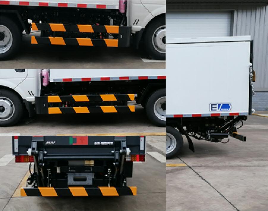ABS型号:CM4YL;ABS生产企业:广州瑞立科密汽车电子股份有限公司;储能装置种类:磷酸铁锂蓄电池;储能装置生产企业:汕尾比亚迪汽车有限公司;选装描述:随底盘选装视镜.可选装车载ETC.;侧后防护情况:侧防护及后防护材料均为Q235A,连接方式为螺栓联接,后防护栏断面尺寸为100?0mm,离地高度为350mm;尾板、上下坡道(或类似装置)收起状态的水平长度(mm):液压尾板收起状态的水平长度为160mm,液压尾板质量350kg;专用功能及装置:专用功能是用于垃圾桶的装卸及运输,专用装置为液压尾板,用于升降垃圾桶; |