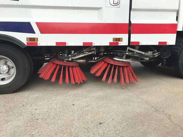 18.上装标配:带4个扫盘、江西五十铃77马力副发动机、三洋马达、施耐德控制开关、海普瑞斯电磁阀组、无级变速自动离合器、免维护离心式自动风机、不锈钢垃圾箱、上海新西山电子水泵,尾部LED箭头指示灯、手动泵应急系统、垃圾举升自卸功能。