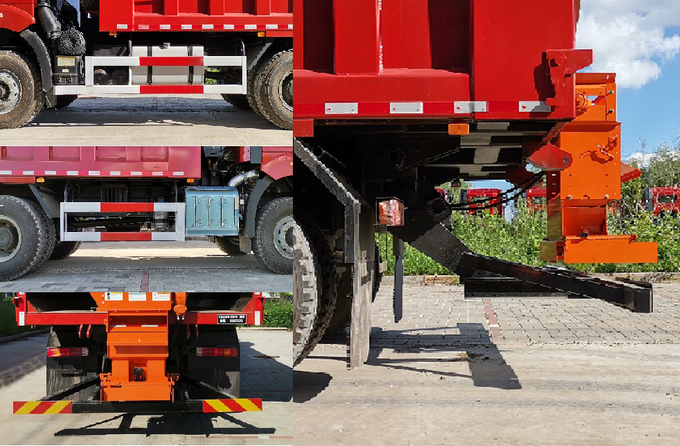 该车专用装置为撒布机,用于冬季道路除雪作业,样车装配A型前支架,Ⅰ型撒布机,选装B型前支架,选装Ⅱ型,Ⅲ型撒布机.长(mm)/前伸(mm)/轴距(mm)/后伸(mm)/后悬(mm)/整备质量(kg)对应关系为:选装前支架A+撒布机Ⅰ时:9400/160/4050+1350/700/1640/17500;9850/160/4300+1350/700/1840/19200;选装前支架A+撒布机Ⅱ时:9260/160/4050+1350/560/1640/17500;选装前支架B+撒布机Ⅰ时:10350/910/4050+1350/700/1840/17900;10600/910/4300+1350/700/1840/18900;选装前支架B+撒布机Ⅲ时:10480/910/4050+1350/830/1840/18900;10730/910/4300+1350/830/1840/19200;侧后防护装置材料均为Q235,连接方式均为螺栓连接,后部防护装置截面尺寸为120x80mm,离地高度为420mm.ABS防抱死制动系统生产厂家:长春瑞立科密汽车电子有限公司,浙江万安科技股份有限公司,型号:CM4XL,VIE ABS-Ⅱ. |
