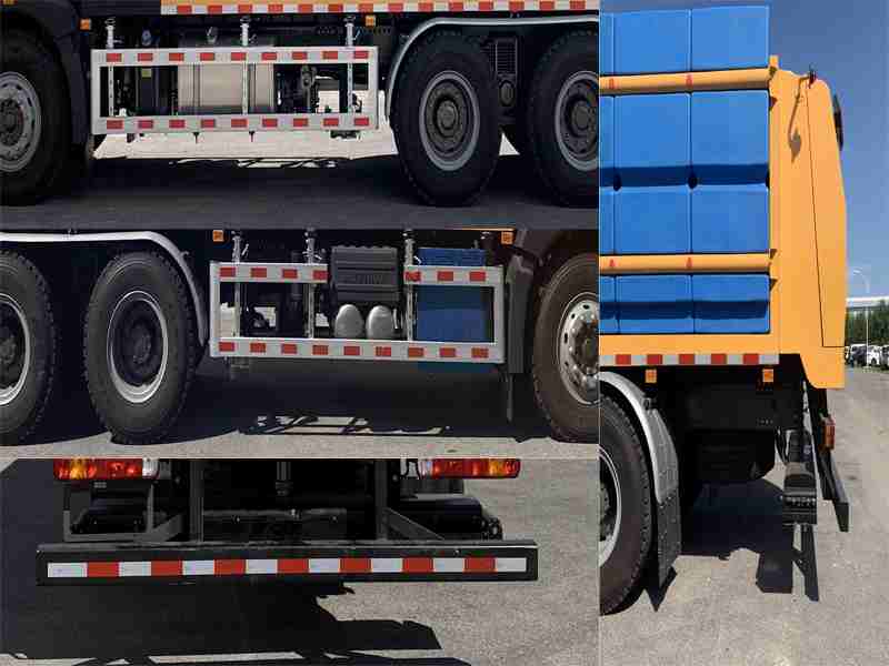仅选用4300+1350mm轴距;仅选用钢板弹簧悬架;选装不带前支架及工作灯,车长9460mm,前后悬:1430/2380mm,质量在误差以内忽略不计;侧防护材质为铝合金,连接方式:螺栓连接,后防护材质为Q235A,连接方式:螺栓连接,后防护断面尺寸:80?40mm,离地高度485mm;ABS型号:4460046300(EBS3), 生产厂家:威伯科(上海)管理有限公司;安装带卫星定位功能的行驶记录仪;该车前部安装前安装架,仅用于该车除雪作业时安装除雪刷;仅在除雪作业时,前部安装除雪刷,前伸量2270mm;车辆装有液体融雪剂撒布装置进行液体撒布作业除雪; |
