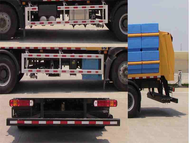 仅选用4500mm轴距;仅选用钢板弹簧悬架;选装不带前支架及工作灯,车长8090mm,前后悬:1430/2160mm,质量在误差以内忽略不计;侧防护材质为铝合金,连接方式:螺栓连接,后防护材质为Q235A,连接方式:螺栓连接,断面尺寸:80?40mm,离地高度485mm;ABS系统控制器生产企业/型号:威伯科(上海)管理有限公司/4460046300;安装带卫星定位功能的行驶记录仪;该车前部安装前安装架,仅用于该车除雪作业时安装除雪刷;仅在除雪作业时,前部安装除雪刷,前伸量2270mm;车辆装有液体融雪剂撒布装置进行液体撒布作业除雪; |
