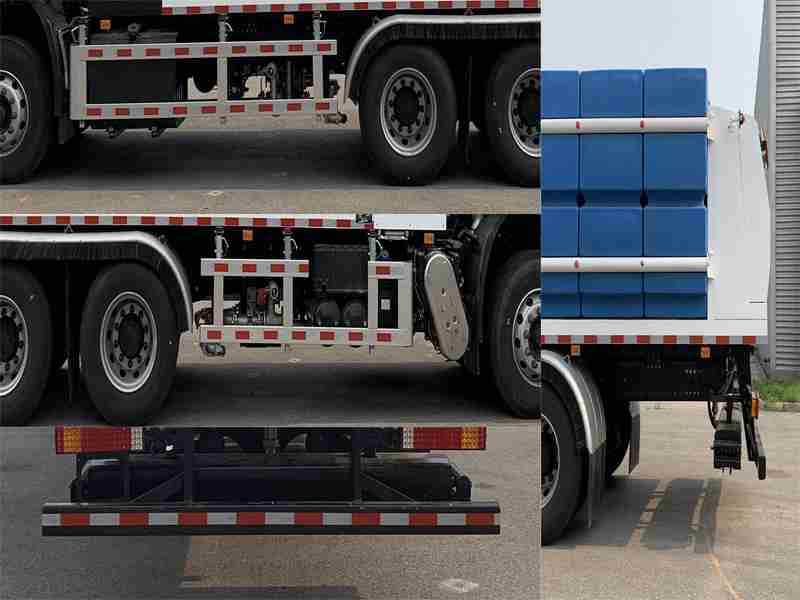 仅选用4350+1350mm轴距;选装不带前支架及工作灯,车长9750mm,前后悬:1480/2570mm,接近角/离去角:18/11?质量在误差以内忽略不计;侧防护材质为铝合金,连接方式:螺栓连接,后防护材质为Q235A,连接方式:螺栓连接,后防护断面尺寸:80?40mm,离地高度430mm;ABS型号/生产厂家:3631010-C2000/东科克诺尔商用车制动系统(十堰)有限公司,ABS 8/东科克诺尔商用车制动系统(十堰)有限公司,4460046450/威伯科汽车控制系统(中国)有限公司.安装带卫星定位功能的行驶记录仪;车辆前部安装推雪铲或滚扫用于除雪、破冰、撒布作业.