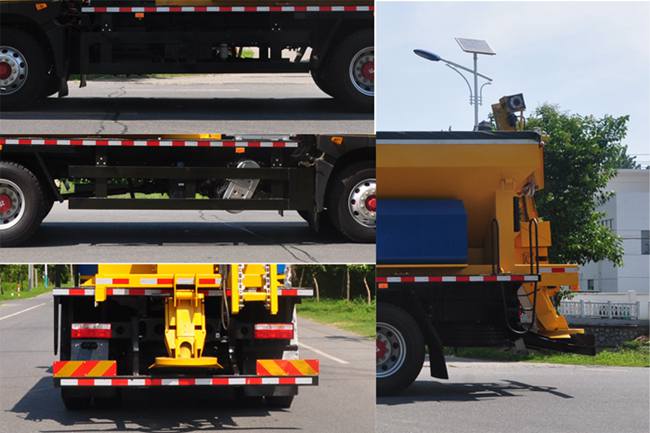 1.撒布机有效容积:10立方米;该车主要装置为融雪剂撒布装置,主要用于路面的融雪作业; 2.侧面防护装置和后下部防护装置材料为Q235,与车辆的连接方式均为螺栓连接,侧面防护最大离地高度455m,后下部防护尺寸为:2400?0?20(mm),最大离地高度435mm; 3.安装具有卫星定位功能的行驶记录仪; 4.ABS系统生产厂家:焦作博瑞克控制技术有限公司 型号:J ABS; 5.发动型号为B6.2NS6B210,最大净功率:151Kw,排量:6200ml; 选装发动型号为D4.5NS6B220,最大净功率157Kw,排量:4500ml; 选装发动型号为D4.0NS6B195,最大净功率:138Kw,排量:4000ml; 选装发动型号为YCS04200-68,最大净功率:143Kw,排量:4156ml; 选装发动型号为CY4SK761,最大净功率:142Kw,排量:4087ml; 6.车辆前部选装无前支架,长度为8460mm;后部选装无提升机构,整备质量为8960kg; |