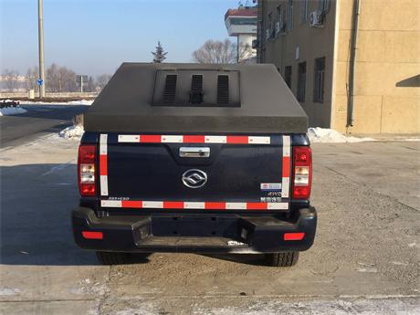 该车前部安装前安装架,该车作业时安装除雪滚刷,滚刷前伸:1330mm,整车长度7070mm;该车随整车选装侧脚踏板,选装一种轮辋,选装后部货箱罩子;发动机最大净功率99KW.ABS系统控制器型号:APG3550500G,生产厂家:浙江亚太机电股份有限公司;