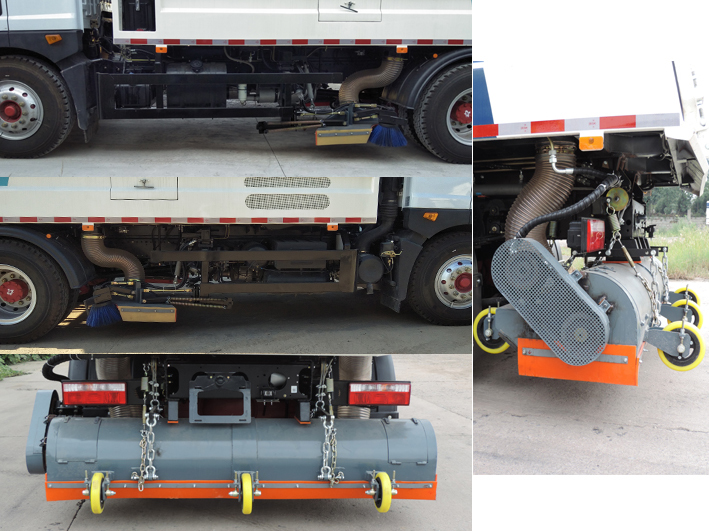 该车主要用于城市道路、广场以及公园路面清扫;由封闭式箱体、副发动机、风机、扫刷、吸盘等组成;仅选用轴距(mm)为:4500,4700,5000的底盘;整车长度/前悬/轴距/后悬对应关系(mm):7700/1260/4500/1940,7900/1260/4700/1940,8200/1260/5000/1940;侧面防护装置由工作装置及部分护栏组成,侧面防护装置材料材质为Q235B,连接方式:螺栓连接;工作装置代替后下部防护装置,离地高度:210mm;ABS系统生产厂家:焦作博瑞克控制技术有限公司,ABS系统型号:JABS;选装水箱在前部独立式安装;后部选装纯吸式吸盘。 |