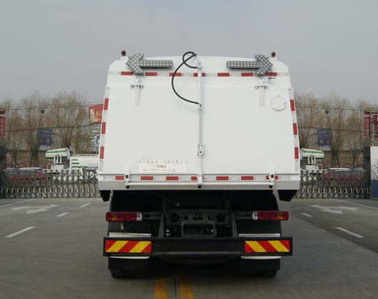 该车装备有垃圾,尘土收集容器及扫刷等专用装置,具有清扫,收集垃圾等污物功能;选装弧形箱体,选装后清水箱,用于后门卸料喷水降尘,选装外观及喷涂样式;仅选用轴距4500mm轴距,仅选用底盘后悬架形式为非独立式钢板弹簧;侧后防护装置材料均为:Q235,侧后防护装置与车架连接方式均为螺栓连接,后防护装置截面尺寸为:240?0mm,离地高度460mm;ABS系统型号为4460046300,生产企业为威伯科(上海)管理有限公司. |