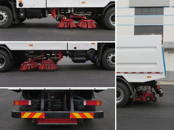 | 车辆主要专用装置有清扫装置,抽吸装置,喷水装置,垃圾箱和液电系统,对路面进行清扫作业,其降尘方式为喷水降尘.仅选用5000mm轴距.随底盘选装前雾灯;驾驶室卧铺侧窗选装装饰板;选装驾驶室(对应前悬1430mm,长度8440mm);选装驾驶室顶部装饰灯;选装驾驶室前面罩;选装前保险杠及前部灯具;选装后视镜;驾驶室前脸扰流罩为选装件;选装后部灯具.选装后部观察口.ABS型号/生产厂家:3631010-C2000/东科克诺尔商用车制动系统(十堰)有限公司,ABS 8/东科克诺尔商用车制动系统(十堰)有限公司,4460046450/威伯科汽车控制系统(中国)有限公司.车辆侧面防护装置由专用装置扫刷代替.后下部防护装置的材料材质为Q235钢,连接方式为焊接,断面尺寸(mm)为80?60,最大离地高度为470mm. |