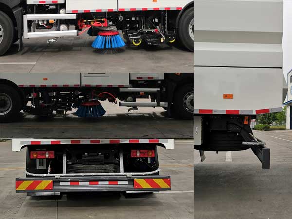 | 1、电池种类/生产企业: 磷酸铁锂电池/宁德时代新能源科技股份有限公司;2、侧防护装置所用材料材质为铝合金,后下部防护装置所用材料材质为:Q235,侧、后下部防护装置连接方式均为螺栓连接,后下部防护装置的断面尺寸为(mm):240?0,最大离地高度为345mm;3、随底盘,ABS型号/生产企业: CM4XL-4S/4M/广州瑞立科密汽车电子股份有限公司;4、随底盘选装电池罩;选装遮阳板;选装前保险杠样式;5、选装前鸭嘴结构;6、该车仅选用5300mm轴距;7、该车安装有垃圾箱、扫刷等专用装置,通过清扫机构、吸扫结合、湿式除尘的工作原理对路面进行清扫作业. |