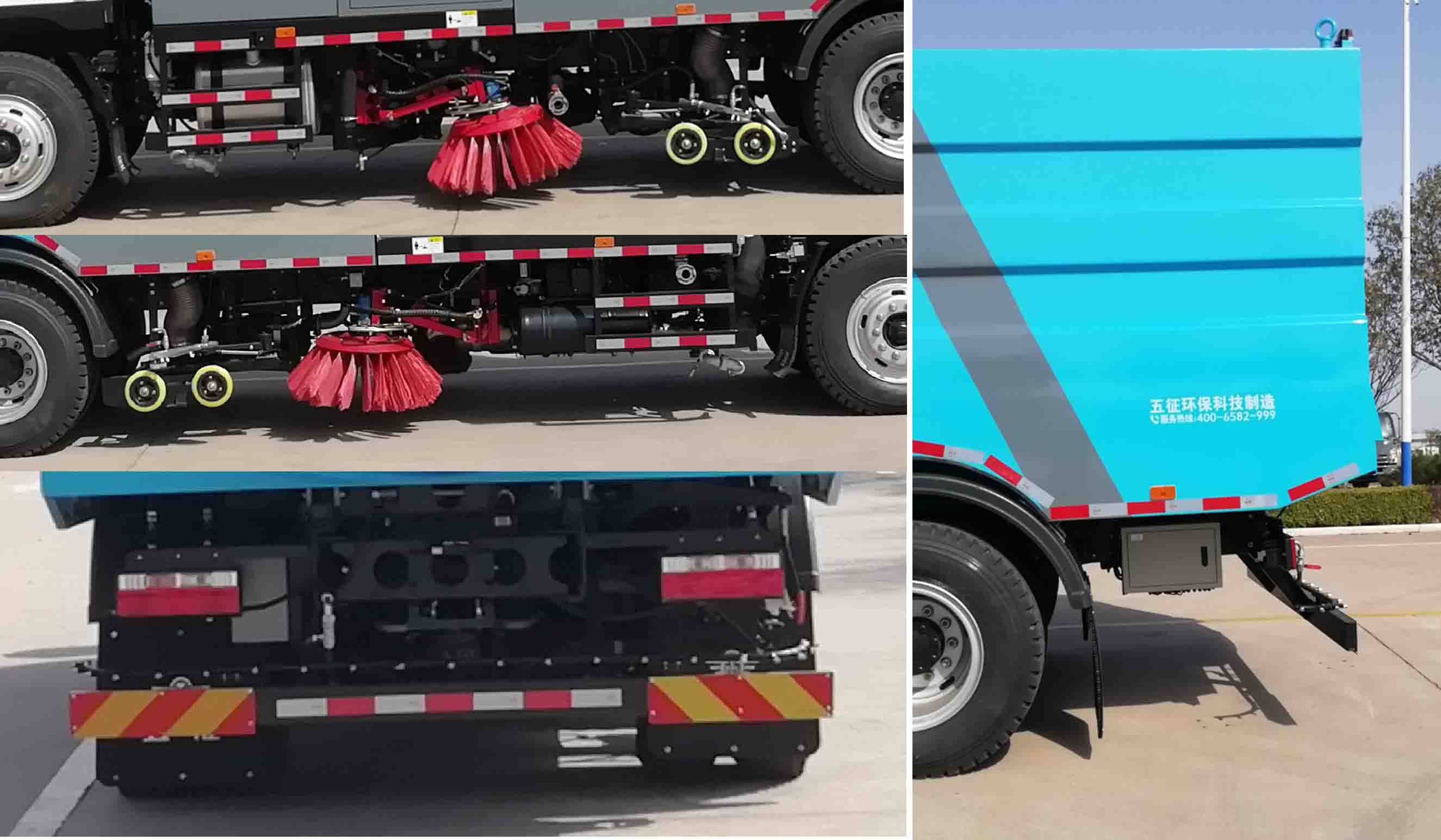 选装上装风格,选装吸嘴体样式,选装四扫盘.侧防护由专用装置代替,后下部防护装置材料为Q235A,连接方式为螺栓连接,后部防护装置截面尺寸为65?50,离地高度为430;所有尺寸单位mm.安装带卫星定位功能的行驶记录仪,ABS型号为446004XXX0,生产厂家为威伯科汽车控制系统(中国)有限公司;专用装置:垃圾箱总成,吸嘴总成装置,具有清扫和清洗功能及垃圾收集功能,用于道路,路面的冲洗及垃圾收集作业.选装水箱透气口朝向. |